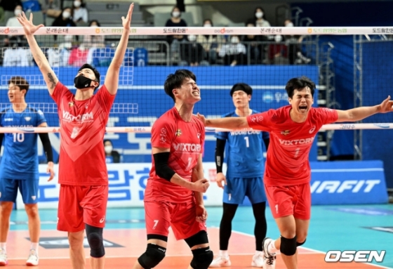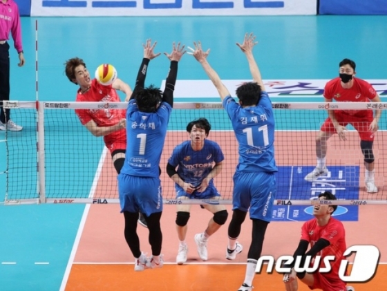 한국전력이 1일 서울 장충체육관에서 열린 우리카드와 도드람 2021~2022 V-리그 남자부 준플레이오프 경기에서 세트 스코어 3-1(30-28, 18-25, 25-22, 25-19)로 승리했다.