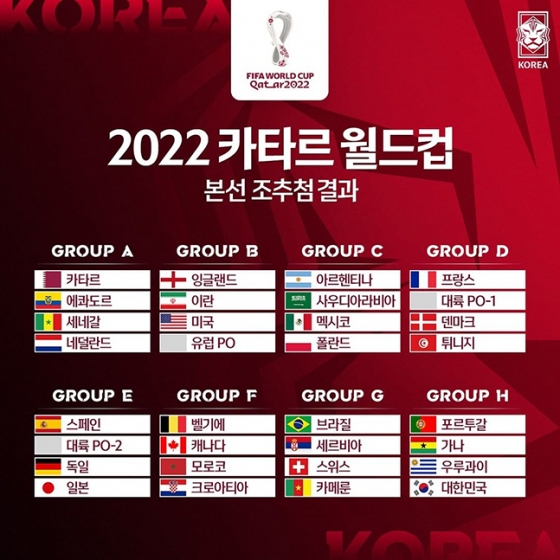 반면 파울루 벤투 감독이 이끄는 한국은 포르투갈과 우루과이, 가나와 H조에 속해 상대적으로 무난한 조 추첨 결과를 받았다는 평가를 받고 있다.