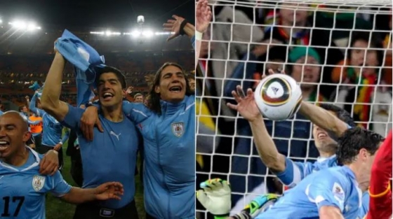 결국 수아레스는 퇴장을 당했고, 가나의 페널티킥 키커로 아사모아 기안이 나섰다. 수아레스는 얼굴을 감싸 쥐며 그라운드를 떠나고 있었는데, 기안의 킥이 크로스바를 강타했다. 수아레스는 이를 본 후 기뻐했고, 우루과이는 승부차기에서 가나를 4-2로 꺾고 4강에 진출했다. 수아레스의 손이 4강 진출의 결정적인 역할을 한 것.