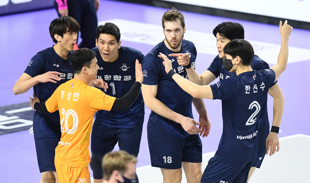 대한항공은 5일 인천 계양체육관에서 열린 KB손해보험과 도드람 2021~2022 V리그 남자부 챔피언결정전 1차전에서 세트스코어 3-1(24-26, 25-22, 25-23, 25-15)로 승리했다. 대한항공이 기선제압에 성공했다.