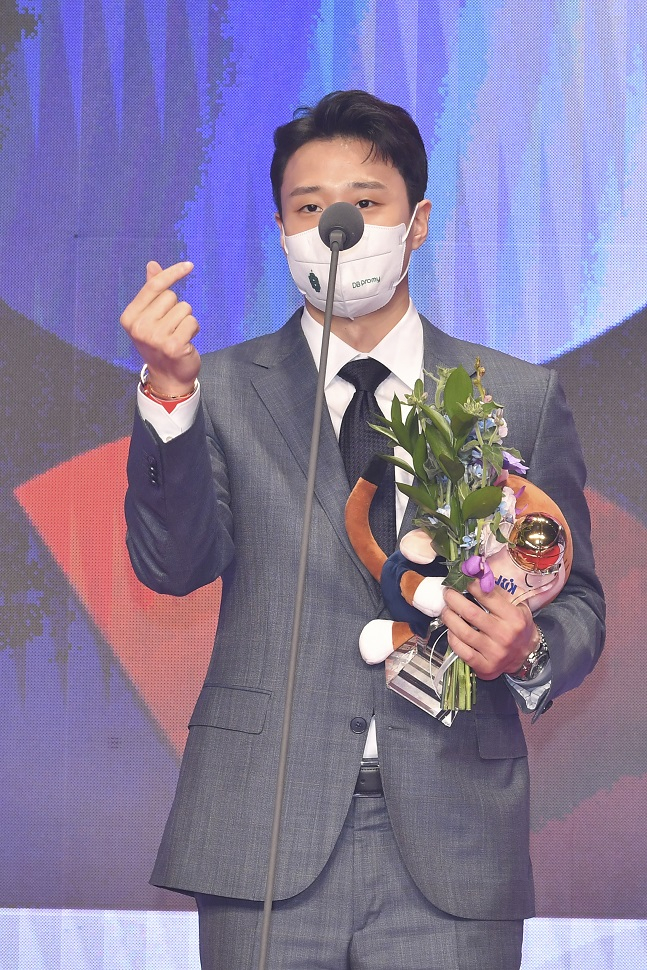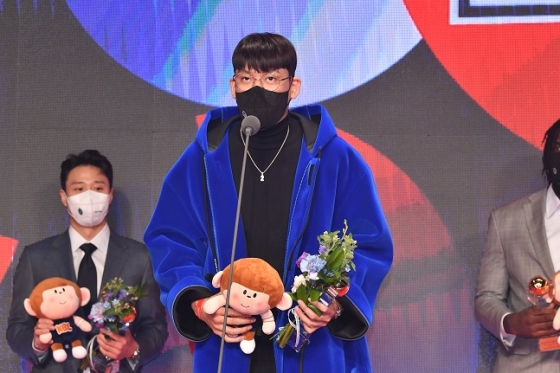 평생 한 번뿐인 신인선수상은 '중고신인' 이우석(울산 현대모비스)이 차지했다. 올 시즌 52경기에 출전, 평균 28분 33초를 뛴 이우석은 12.0점 4.2리바운드 3.2어시스트를 기록했다. 이우석은 역대 최초로 2년 차 선수로 신인왕을 차지하는 영예를 누렸다. 현대모비스 선수로는 2004~05시즌 양동근 이후 무려 17년 만에 나온 영광이었다.