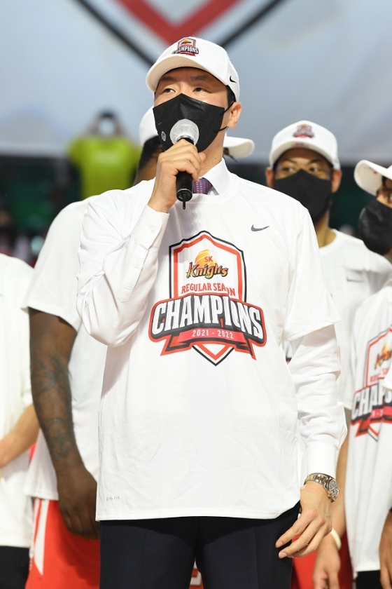 지난해 6강 탈락팀을 1위로 이끈 비결이 있을까. 전 감독은 "자밀 워니와 재계약하며 팀의 기둥을 잘 잡았고, 국내 선수들이 소통과 믿음이 이뤄지면서 작년에 안 됐던 부분들이 시너지 효과를 일으켰다"고 이야기했다.