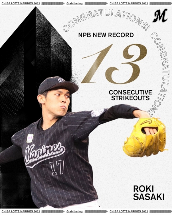 사사키가 세운 13타자 연속 탈삼진은 메이저리그에서도 나오지 못한 세계 신기록이다. 메이저리그에서는 1970년 톰 시버(뉴욕 메츠), 2021년 코빈 번스(밀워키 브루어스), 애런 놀라(필라델피아 필리스)가 10타자 연속 탈삼진을 잡은 것이 전부다. KBO리그 역시 이대진(해태 타이거즈)가 현대 유니콘스를 상대로 1998년 5월 14일 인천 구장에서 기록한 10타자 연속이 최고다.