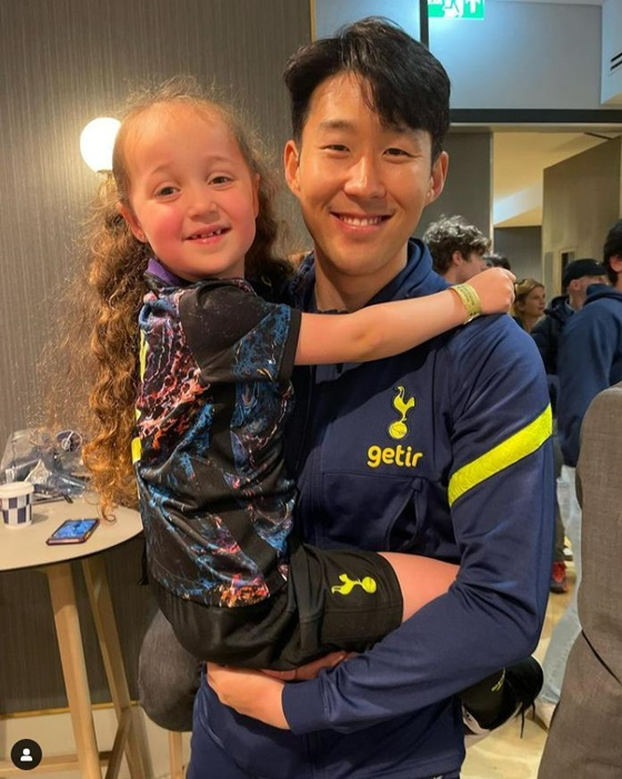 이 꼬마팬은 토트넘 팬으로 유명한 데릴라 소프(4). 또 가장 좋아하는 선수로는 손흥민으로 알려져 있다. 그의 어머니 데미 소프(30)가 17일(한국시간) 자신의 인스타그램에 손흥민이 데릴라를 안고 있는 사진을 올려 눈길을 끌었다.