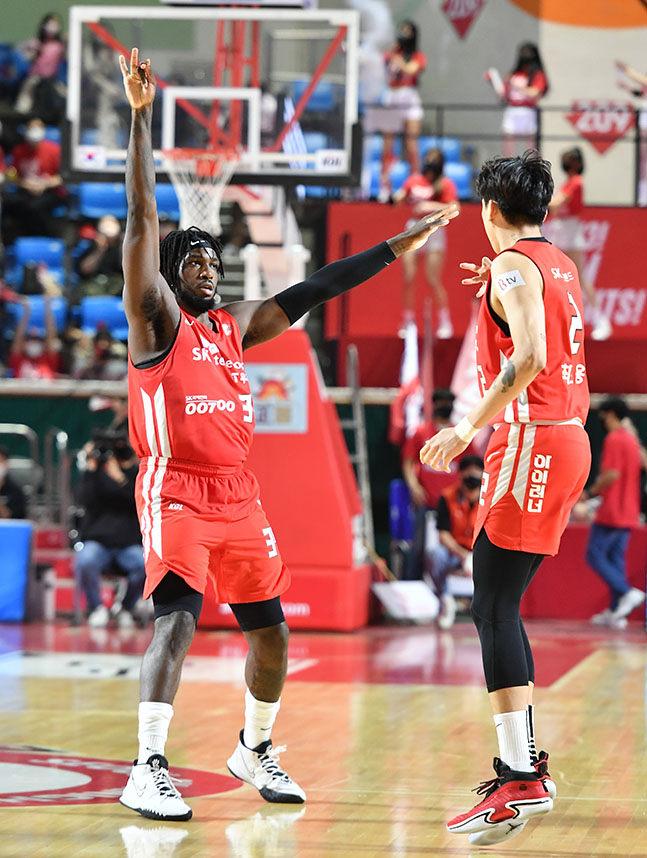 SK는 22일 서울 잠실학생체육관에서 열린 2021~2022 KGC인삼공사 정관장 프로농구 4강 플레이오프(PO·5전 3승제) 2차전에서 오리온에 91-83으로 승리했다.