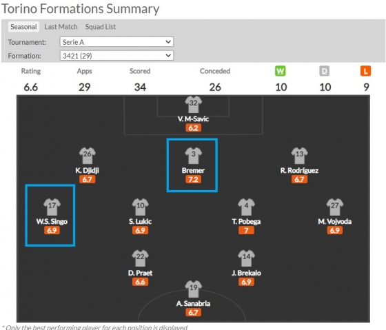토리노는 리그 11위에 머물러있으나 브레머가 수비 중심을 잡아주면서 32경기에서 31실점밖에 내주지 않았다. 상위 4팀을 제외하고 최소 실점 팀이다.