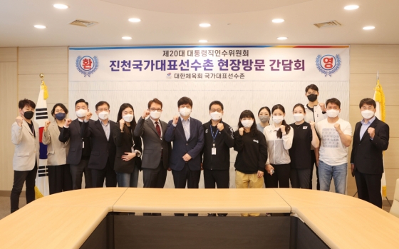 대한체육회는 25일 "인수위원회가 이날 오후 12시 대한체육회 진천 국가대표선수촌을 방문해 국가대표 선수, 지도자의 현장 의견을 청취하고 진천 선수촌 내 훈련 시설과 메디컬 센터 등을 살펴보는 시간을 보냈다"고 밝혔다.