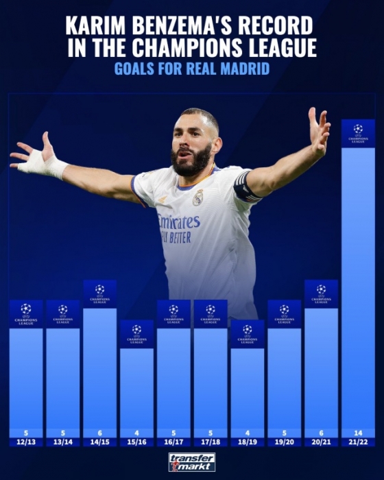글로벌 매체 트랜스퍼마크트는 27일(한국시간) "벤제마는 나이가 들수록 더 좋아지는 것 같다. 챔피언스리그 신기록도 세울 수 있을 것으로 보인다"고 밝혔다.