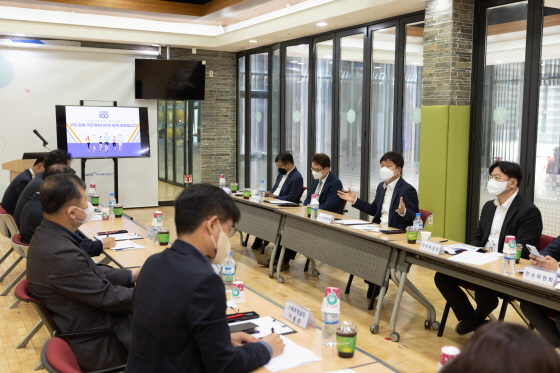 이날 함께 진행된 간담회에서는 김도식 인수위 사회복지문화분과 인수위원을 비롯하여 공단 조현재 이사장, 박태영 전무이사, 한종규 체육진흥본부장 등이 참석하여 인수위가 발표한 '스포츠 마일리지제도 도입'에 대한 구체적인 시행계획과 현안사항에 대해 논의하였다.