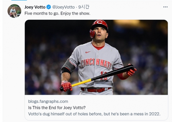 그러자 보토가 직접 나섰다. 그는 이 칼럼을 자신의 SNS에 공유했다. 그러면서 "아직 시즌은 5달 남았다. 지켜봐 달라"는 멘트를 남겼다. 본인의 반등을 자신한 것이다.