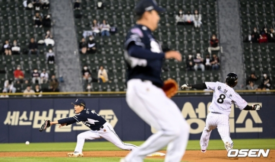 하지만 결정적인 상황에서 수비 약점을 노출했다. 팀이 2-1로 앞선 3회말에는 무사 1루서 홍창기의 땅볼 타구를 잡아 2루로 뿌렸으나 뒤로 빠지고 말았다. 신성현의 송구 실책이었다. 여기가 끝이 아니었다. 계속된 2사 3루 상황서 문보경의 1루 땅볼 타구를 뒤로 빠트리는 실책을 범했다.