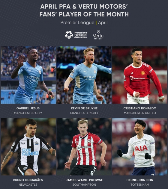 PFA는 10일(한국시간) 팬들의 투표로 결정하는 4월의 선수 최종 6인의 후보를 발표했다. 4월에만 잉글리시 프리미어리그(EPL)서 4골을 뽑아낸 손흥민이 이름을 올렸다.