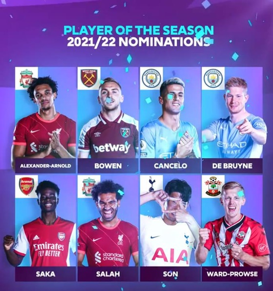 프리미어리그는 13일(한국시간) 공식 홈페이지를 통해 2021~2022시즌 프리미어리그 올해의 선수 후보 명단을 발표했다.