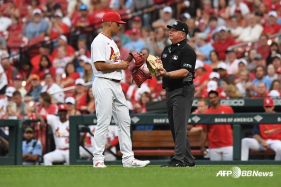 메이저리그(MLB) 최고 수준의 싱킹 패스트볼을 보유한 조던 힉스(26·세인트루이스). 그런데 그가 공을 던지기도 전에 심판의 지적을 받는 일이 일어났다.