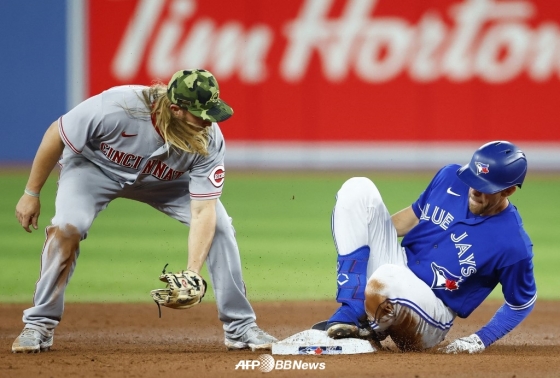 류현진(35·토론토)이 출전한 경기서 뜻밖에 반가운 얼굴이 등장했다. 바로 과거 KBO 리그 키움 히어로즈에서 활약했던 테일러 모터(33)였다.