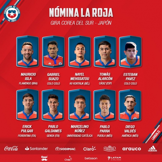 이슬라와 발데스는 24일(한국시간) 칠레축구협회가 발표한 6월 한국 원정 칠레 국가대표팀 명단에 나란히 이름을 올렸다. 파울루 벤투(53·포르투갈) 감독이 이끄는 대한민국 축구대표팀과 칠레의 평가전은 오는 6월 6일 대전월드컵경기장에서 열릴 예정이다.