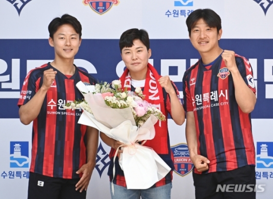 지소연은 26일 수원시청에서 열린 입단 기자회견을 통해 수원FC 위민 입단을 공식화했다. 수원FC 위민은 앞서 수원FC 재단이 여자실업축구 WK리그 수원도시공사를 통합 이관해 운영 중인 여자 축구팀이다. 이날 지소연 입단 기자회견에 이승우와 박주호가 깜짝 등장해 축하한 이유, 그리고 이들이 지소연과 같은 유니폼을 입고 있던 배경이었다.