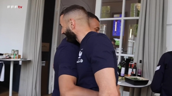 그리고 대표팀에서 만났다. 프랑스 축구 연맹이 공개한 영상에서 벤제마는 조금 늦게 합류했다. 챔피언스리그 우승 후 세리머니까지 하고 온 터다. 이미 소집되어 있는 선수들은 한 명씩 나가 벤제마를 맞이했다. 그리고 한 명씩 한 명씩 포옹했다. 그 중에는 음바페도 있었다. 두 선수는 웃으며 하이파이브를 한 뒤 진한 포옹을 나눴다. 음바페가 벤제마의 품 속으로 폭 안기는 모습이었다.