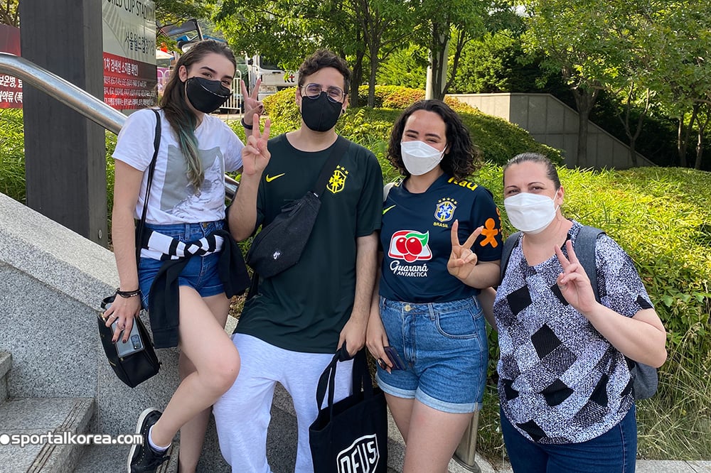 이들은 브라질 대표팀의 스타 선수들을 직접 보기 위해 경기장을 찾았다. 그들은 “티아고 실바(첼시)와 필리피 코치뉴(FC 바르셀로나)를 좋아한다”며 “한국 팀에서는 손흥민을 안다”고 밝혔다. 남성 팬은 “대구FC 골키퍼를 안다”고 했는데, 과거 대구에서 뛰었던 조현우(울산현대)를 이야기하는 듯했다.