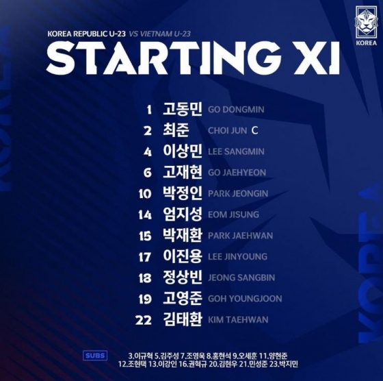 한국 U-23 베트남전 선발 라인업./사진=대한축구협회