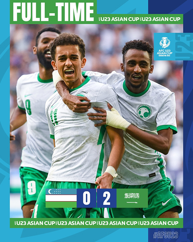 사우디아라비아가 2022 AFC(아시아축구연맹) U-23 아시아컵 정상에 올랐다. 2년 전 결승에선 당시 김학범 감독이 이끌던 한국에 져 우승에 실패했지만, 이번엔 개최국 우즈베키스탄을 2-0으로 완파하고 '무실점 우승'이라는 금자탑을 쌓았다.