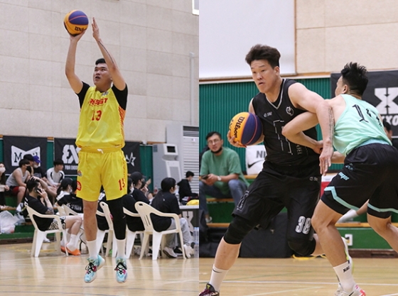 주태수(왼쪽)과 송창무는 2M가 넘는 장신이다. 주태수는 KXO리그 농구대학으로 출전했고 송창무는 오픈부 블랙라벨 소속으로 출전했다.
