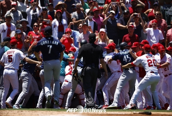 지난 27일(한국시간) 미국 캘리포니아주 애너하임 에인절스 스타디움에서 열린 메이저리그 LA 에인절스와 시애틀의 경기에서 빈볼 시비가 결국 양팀간의 집단 난투극으로 이어져 총 8명이 퇴장당하는 일이 벌어졌다. 메이저리그 사무국은 이튿날인 28일 양팀 합해 총 12명에 대한 징계를 결정했다.