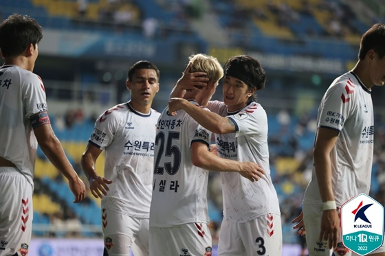 수원FC는 6일 인천축구전용경기장에서 열린 하나원큐 K리그1 2022 20라운드 인천 유나이티드와 원정경기에서 후반 추가시간에 터진 니실라의 결승골을 앞세워 1-0 극적 승리를 따냈다.