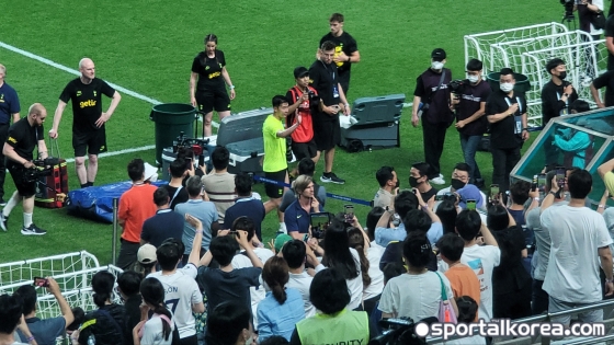 훈련이 끝난 후 선수들은 팬들에게 인사를 건네며 라커룸으로 들어갔다. 마지막은 역시 손흥민이었다. 손흥민은 끝까지 피치에 남아 팬들 하나하나에게 인사를 전했다. 경기장을 크게 한바퀴 돌면서 인사한 손흥민은 마지막에는 미처 인사를 하지 못한 반대편까지 인사를 했다.