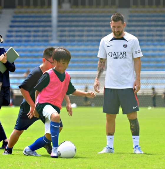 메시, 일본 아이들과 미니게임…네이마르-음바페도 직접 축구 교습