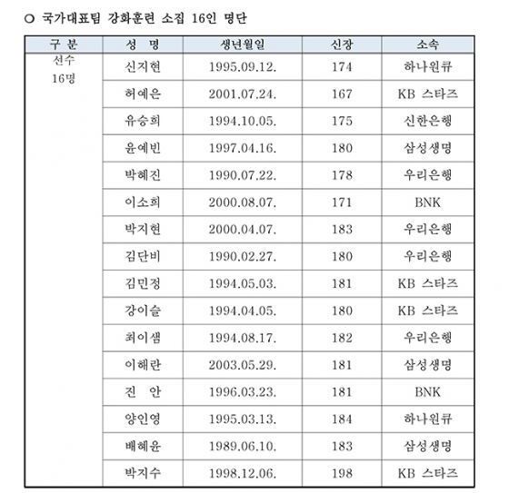 훈련 대상자로 확정된 16명의 선수는 내달 1일 진천선수촌에 소집돼 훈련을 진행할 예정이다. 평가전은 유관중 경기로 진행될 예정으로, 예매 일정 등은 추후 공지될 예정이다.