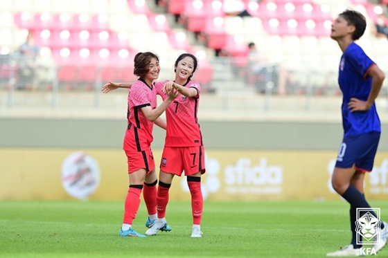 한국 여자축구가 2022 EAFF E-1 챔피언십(동아시안컵) 첫 승리를 따냈다.