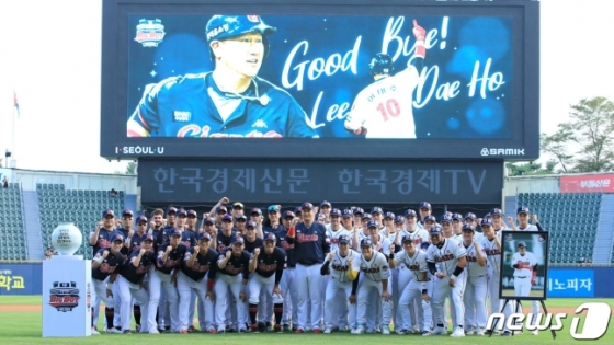 아울러 이대호의 사진이 담긴 액자를 준비해 김태룡 단장이 건넸다. 김태형 감독과 주장 김재환은 꽃다발을 전달했다. 이대호의 부인인 신혜정씨도 등장해 이대호에게 꽃다발을 안기며 축하했다.
