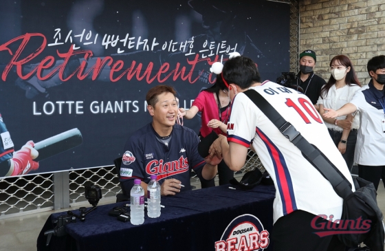 이대호는 가장 기억에 남는 두산 경기를 묻자 "2010년 준플레이오프가 가장 기억에 남는다. 발목을 다친 상태에서 테이핑을 하고 진통제를 8알 정도 먹고 경기에 나갔다. 마지막 타석에선 고통을 참고 죽기 살기로 쳤는데 홈런이 나와 기쁘게 부산으로 내려갈 수 있었다. 수훈 인터뷰 때도 어지러워서 머리가 빙빙 돌았던 기억이 난다"고 했다.