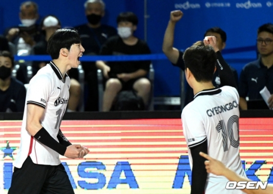 이날 라이트 허수봉(24·현대캐피탈)이 33득점을 하며 에이스 역할을 톡톡히 했다. 레프트 나경복(28·우리카드)은 20득점으로 발을 맞췄다.