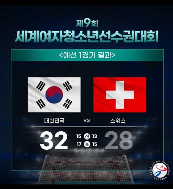 한국 청소년(U-18) 여자핸드볼이 제9회 세계청소년여자선수권대회 첫 경기에서 스위스를 제압했다.