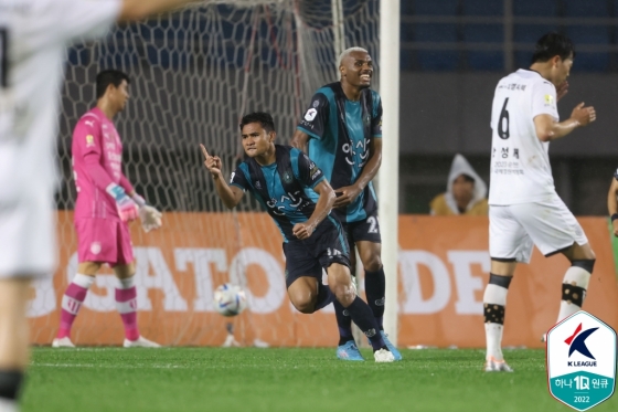 역습에 역습이 이어졌다. 웃은 팀은 안산이다. 후반 14분 역습 상황에서 아스나위가 빠르게 볼을 몰고 올라가 때린 왼발 슈팅이 수비수에게 막혔다. 아스나위는 흐른 볼을 재차 오른발로 때려 골망을 흔들었다.