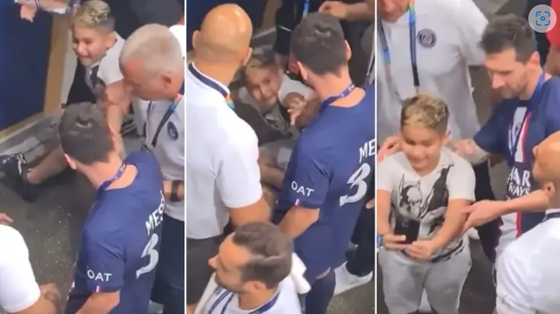 그러자 메시는 경호를 말리며, 꼬마팬을 붙잡아 일으켜 세웠다. 그리고 함께 기념사진을 찍는 팬서비스를 펼쳤다.