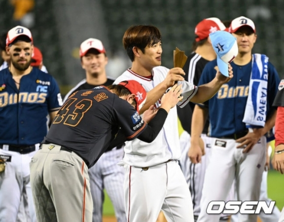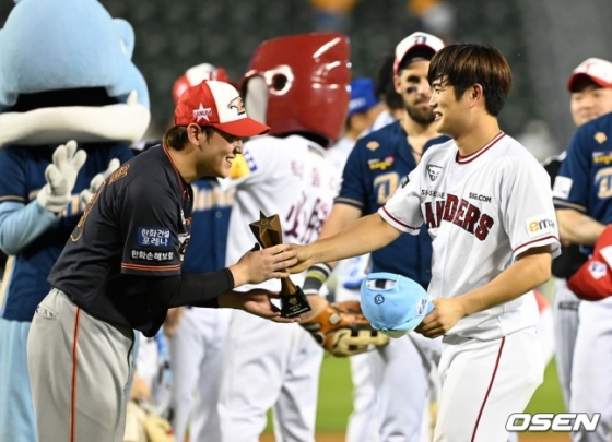 자신이 미스터 올스타로 뽑혔지만 더 주목을 받았던 건 김민식(33·SSG)이었다. 그리고 시상식을 마친 뒤 MVP 트로피를 김민식에게 잠시나마 건네줬던 정은원(22·한화). 참으로 훈훈한 장면이었다.
