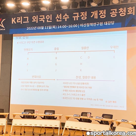한국프로축구연맹은 11일 오후 2시 종로구 신문로 아산정책연구원 대강당에서 K리그 외국인 선수 제도 개정을 위한 공청회를 개최했다.