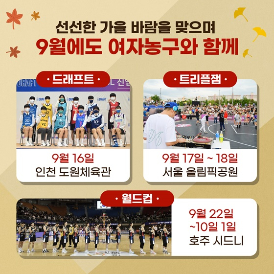 삼성생명의 우승으로 막을 내린 박신자컵 서머리그를 뒤로하고 WKBL(한국여자농구연맹)은 9월에도 풍성한 농구 이벤트로 팬들을 찾아간다.