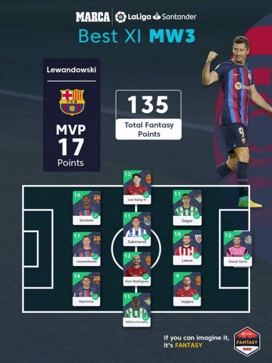올 시즌 개막 후 맹활약을 펼치고 있는 이강인도 당당히 이름을 올렸다. 이강인은 월드 클래스 선수들과 어깨를 나란히 했다.