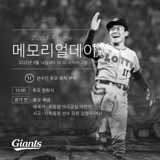롯데는 "14일 부산 사직구장에서 열리는 SSG랜더스와 홈경기에서 고(故) 최동원 선수의 11주기 추모행사를 진행한다"고 12일 밝혔다.