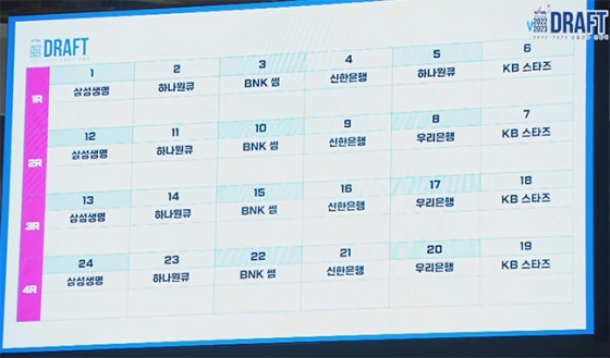이에 지난 시즌 5위였던 삼성생명이 전체 1순위로, 6위인 하나원큐는 2순위로 각각 신인 선수를 지명하게 됐다. 삼성생명이 1라운드 1순위로 선수를 선발하는 건 2012시즌 박다정, 2016시즌 윤예빈, 2021~2022시즌 이해란에 이어 이번이 4번째이자 2년 연속이다.