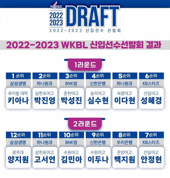 삼성생명은 16일 오후 3시 30분 인천 도원체육관에서 열린 2022~2023 신입선수 선발회에서 전체 1순위로 키아나 스미스를 지명했다. 외국국적 동포선수 자격으로 참가한 키아나 스미스는 지난 4월 WNBA 드래프트 2라운드 4순위로 LA 스파크스의 지명을 받았던 WNBA 출신 선수다. 한국인 어머니 나라인 WKBL 문을 두드리면서 전체 1순위 지명이 기정사실이 됐고, 실제 전체 1순위의 영광을 안았다.