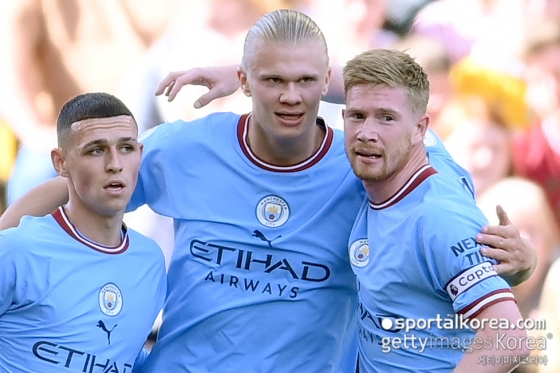 원정팀 맨시티도 4-3-3 포메이션이다. 전방에 그릴리시, 홀란, 포든이 자리했고 중원에 실바, 로드리, 더 브라위너다. 포백은 칸셀루, 아칸지, 디아스, 스톤스가 구성했고 골문은 에데르송이다.