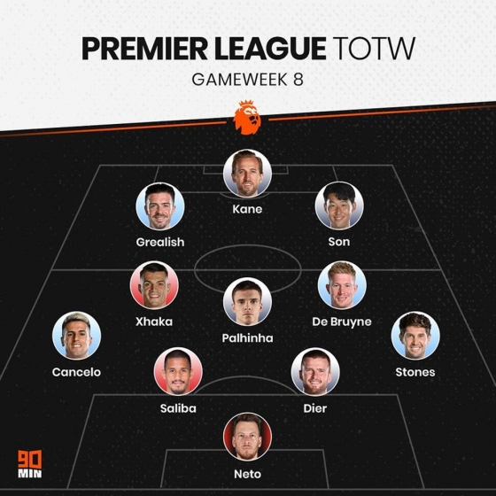 영국 매체 ‘90min’은 지난 20일(현지시간) 2022/2023 잉글리시 프리미어리그(EPL) 8라운드 TEAM OF THE WEEK(이주의 선수)를 자체 선정해 발표했다.