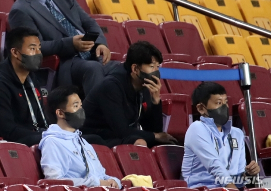 지난해 9월 7일 수원월드컵경기장에서 열린 '2022 FIFA 카타르 월드컵 아시아지역 최종예선 A조 2차전' 대한민국과 레바논의 경기, 대한민국 손흥민이 관중석에서 경기를 지켜보고 있다. /사진=뉴시스
