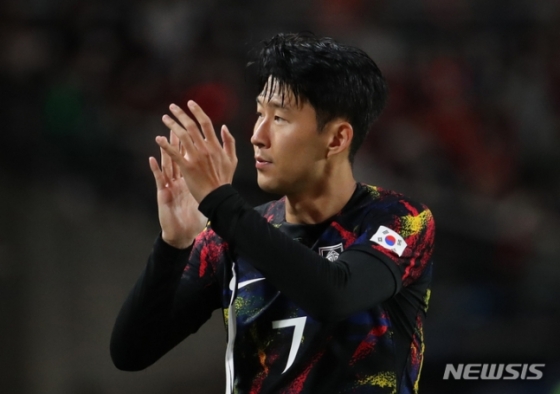 대한민국 축구대표팀 주장 손흥민이 23일 고양종합운동장에서 열린 코스타리카전을 마친 뒤 팬들에게 인사하고 있다. /사진=뉴시스