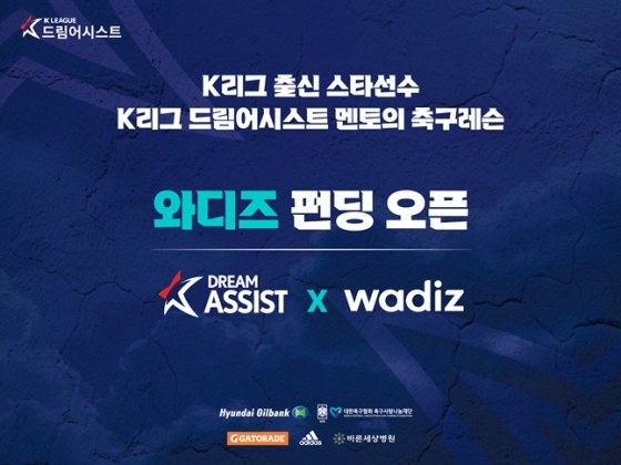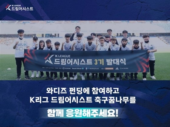 한국프로축구연맹(총재 권오갑)과 K리그 공식 후원사 현대오일뱅크, 대한축구협회 축구사랑나눔재단이 함께하는 'K리그 드림어시스트'가 축구팬들을 대상으로 와디즈 펀딩을 진행한다고 연맹이 27일 밝혔다.